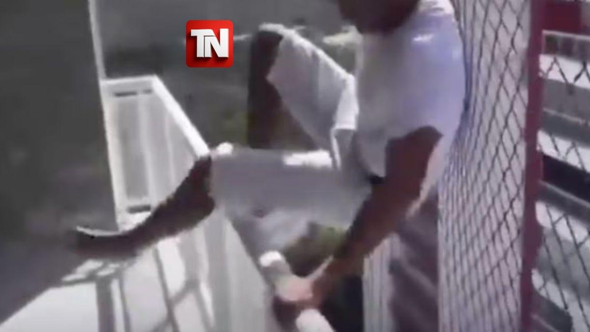 En las imágenes, grabadas presuntamente por un vecino desde otro inmueble cercano, se observa al hombre cruzar el balcón sin arnés visible y dejarse caer al vacío. Segundos después, impacta contra una malla de protección colocada varios niveles más abajo. La red se deforma considerablemente por la fuerza del golpe, pero logra sostenerlo sin romperse.